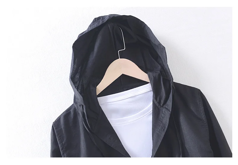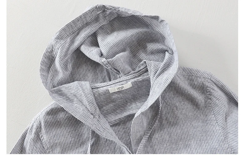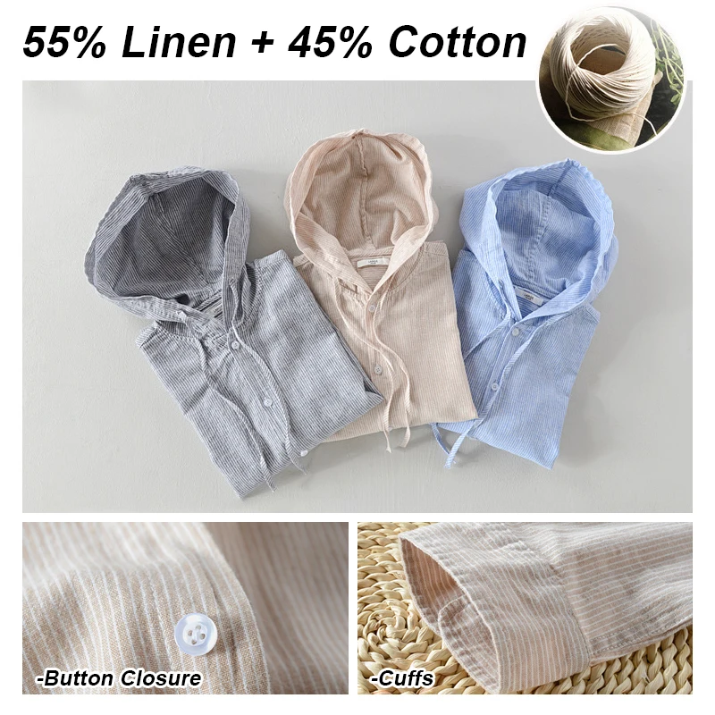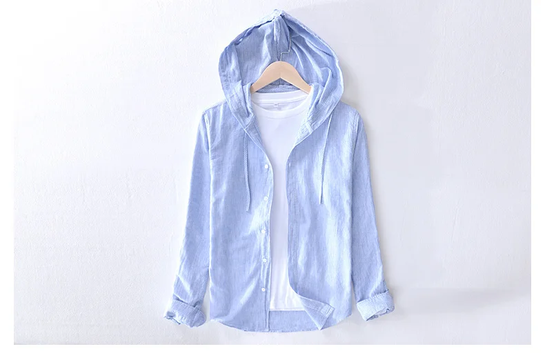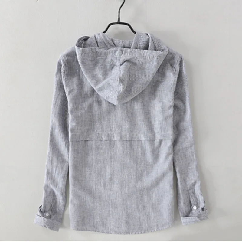 2021 Men Brand Japanese Fashion Striped Cotton Linen Hooded Shirts Male Casual Long Sleeve White Blouse Plain Vintage Shirts