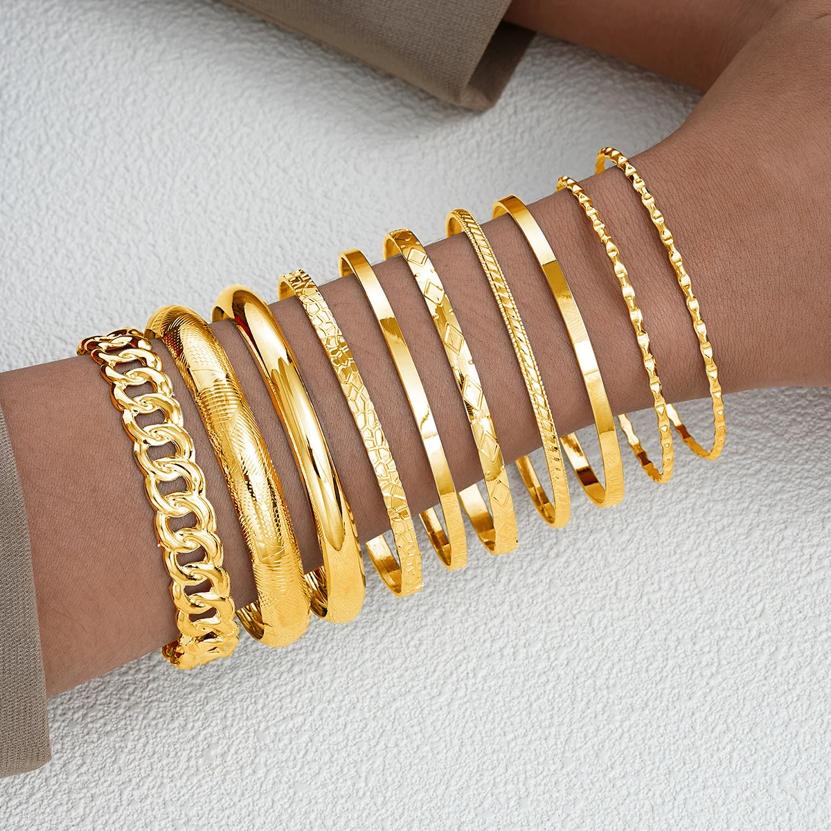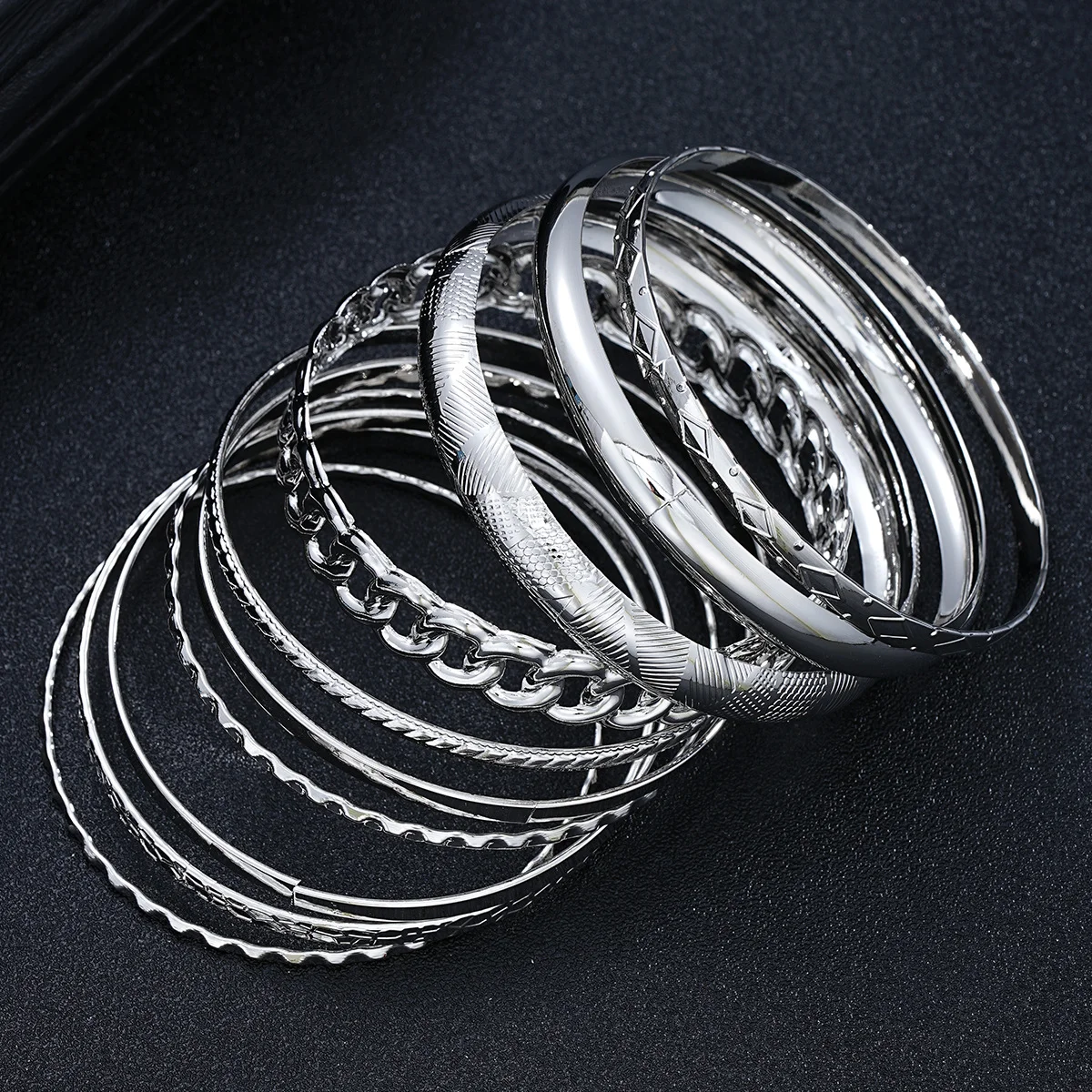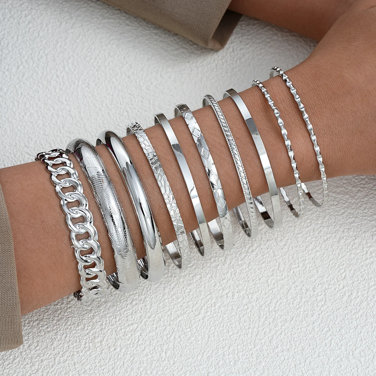 10pcs/set Punk Metal Bangles Set For Women Heavy Vintage Styles Hip hop Textured Bracelets Fashion Jewelry Accessories 2025 New