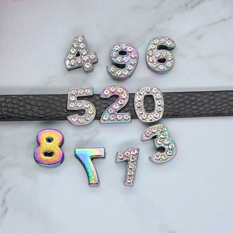 120pcs 10mm Rainbow Crystal Slide Charms Number For Jewelry Making Women Bracelet Alphabet Pet Collar Necklace DIY Accessories
