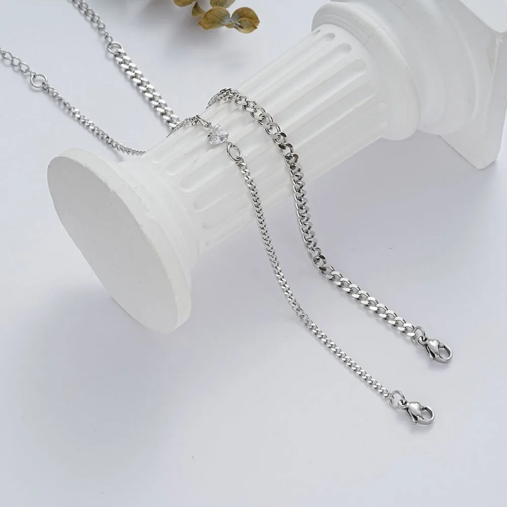 2Pcs 925 Sterling Silver Chain Bracelet Set for Women Men Simple Crystal Heart Adjustable Couple Bracelets Couple Jewelry Gifts