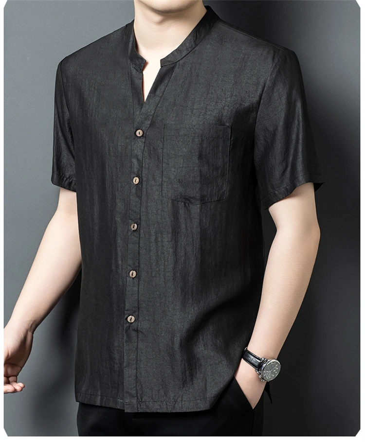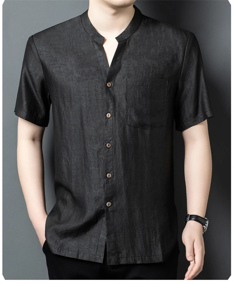 Crack Plus Size Silk Shirts For Men Short Sleeved Skin-Friendly Summer Quality Gambiered Canton Gauze Tang Costume Chemise Homme