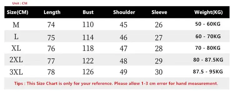 3. This Size Chart is only for your reference. Please allow 1-3 cm error for hand measurement.