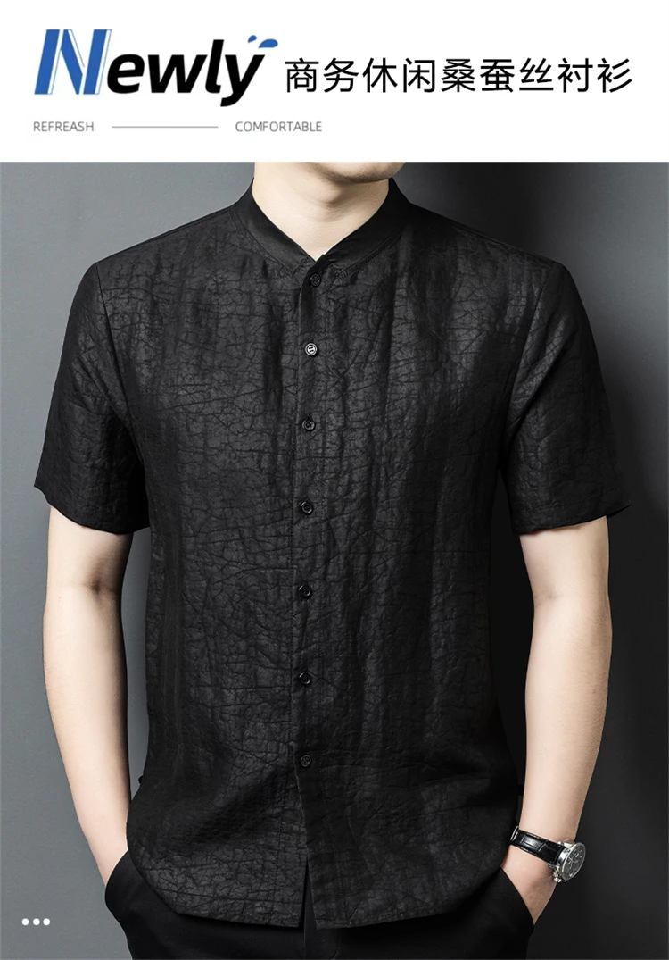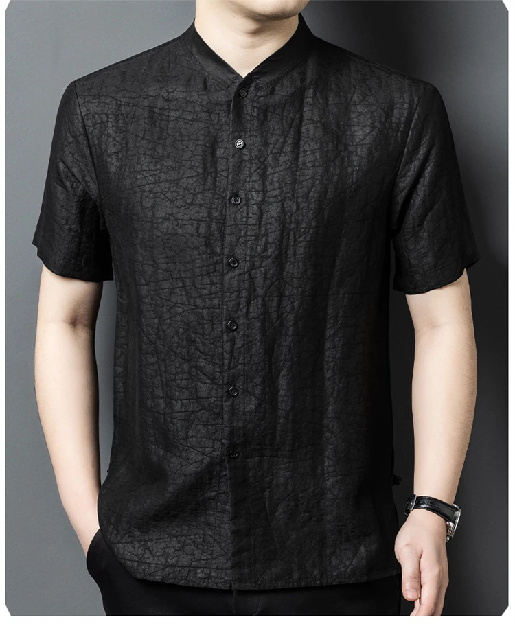 Gambiered Canton Gauze Shirts For Men Short Sleeve Lightweight Summer Quality 100% Silk Soft Comfortable Crack Camisas De Hombre