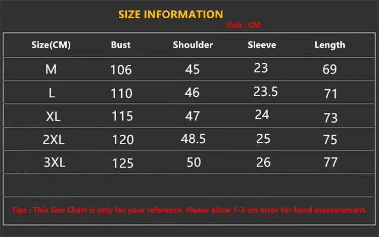 3. This Size Chart is only for your reference. Please allow 1-3 cm error for hand measurement.