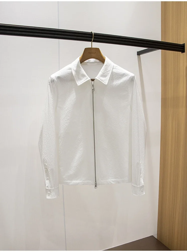 Light Zero Pressure Jacquard Seersucker Fabric High-end Men’s Thin Shirt Jacket