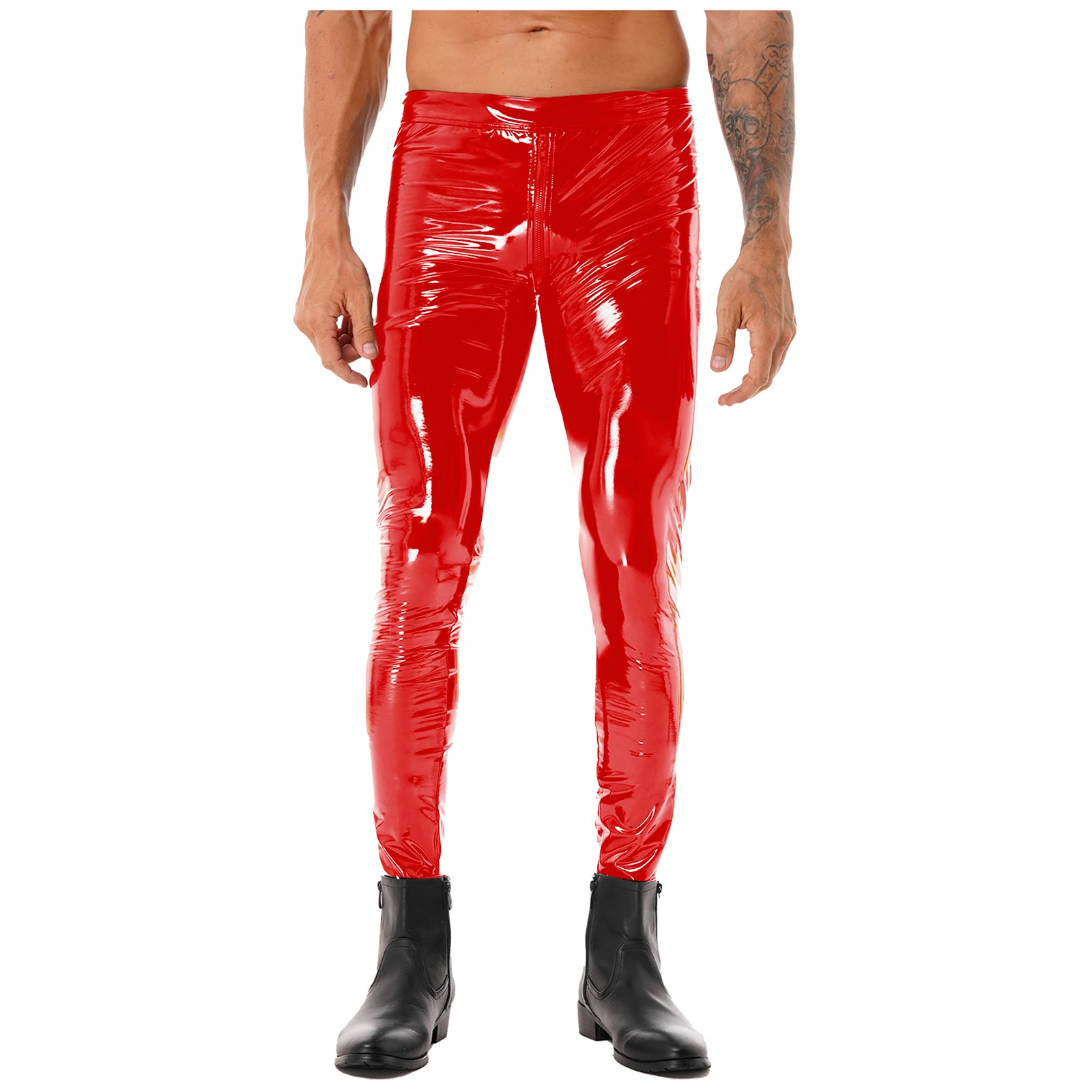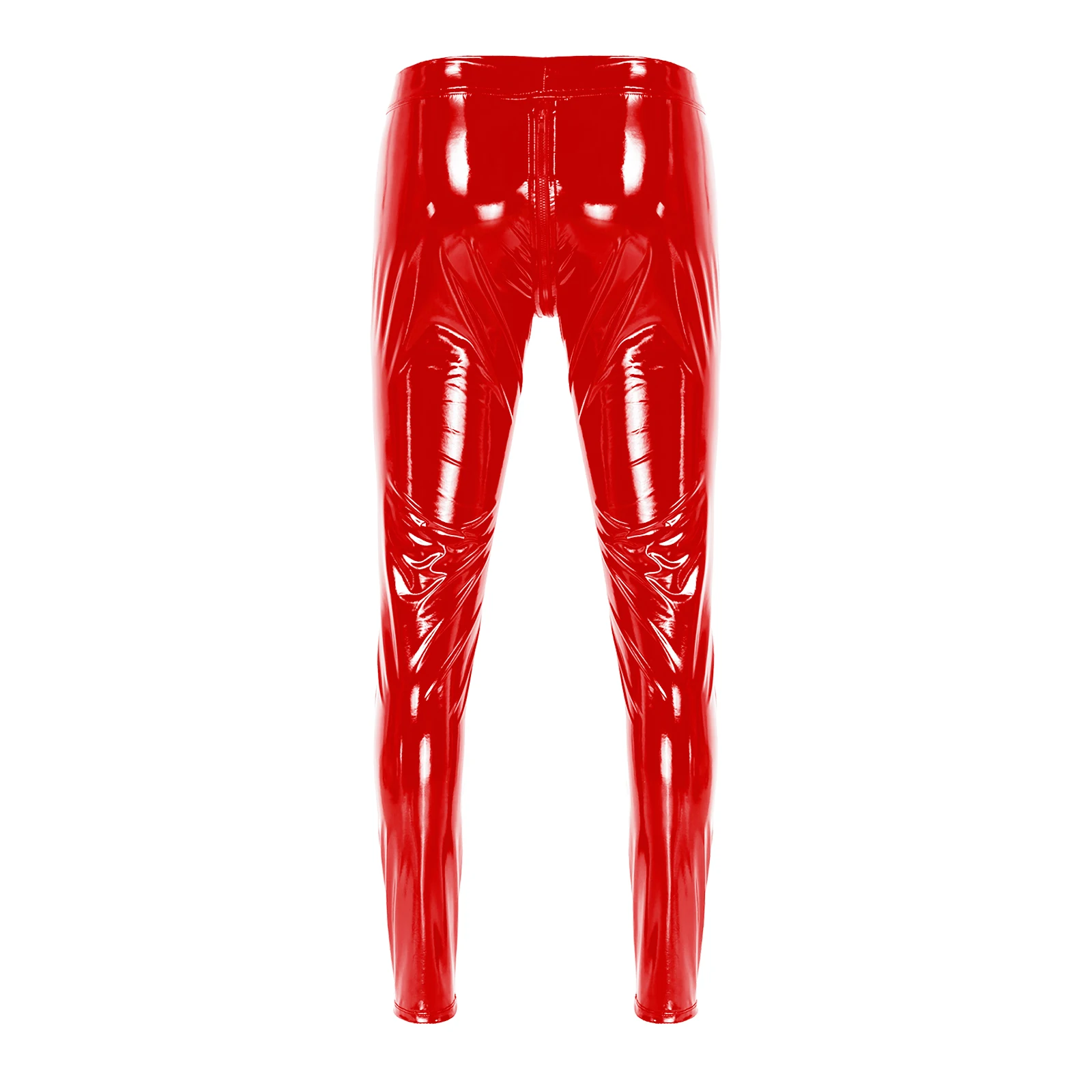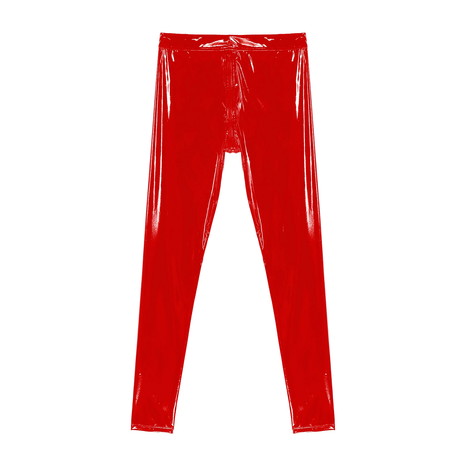 Men Low Waist Faux Leather Shiny Pants Fashion Tight Trousers for Club Stage Show.