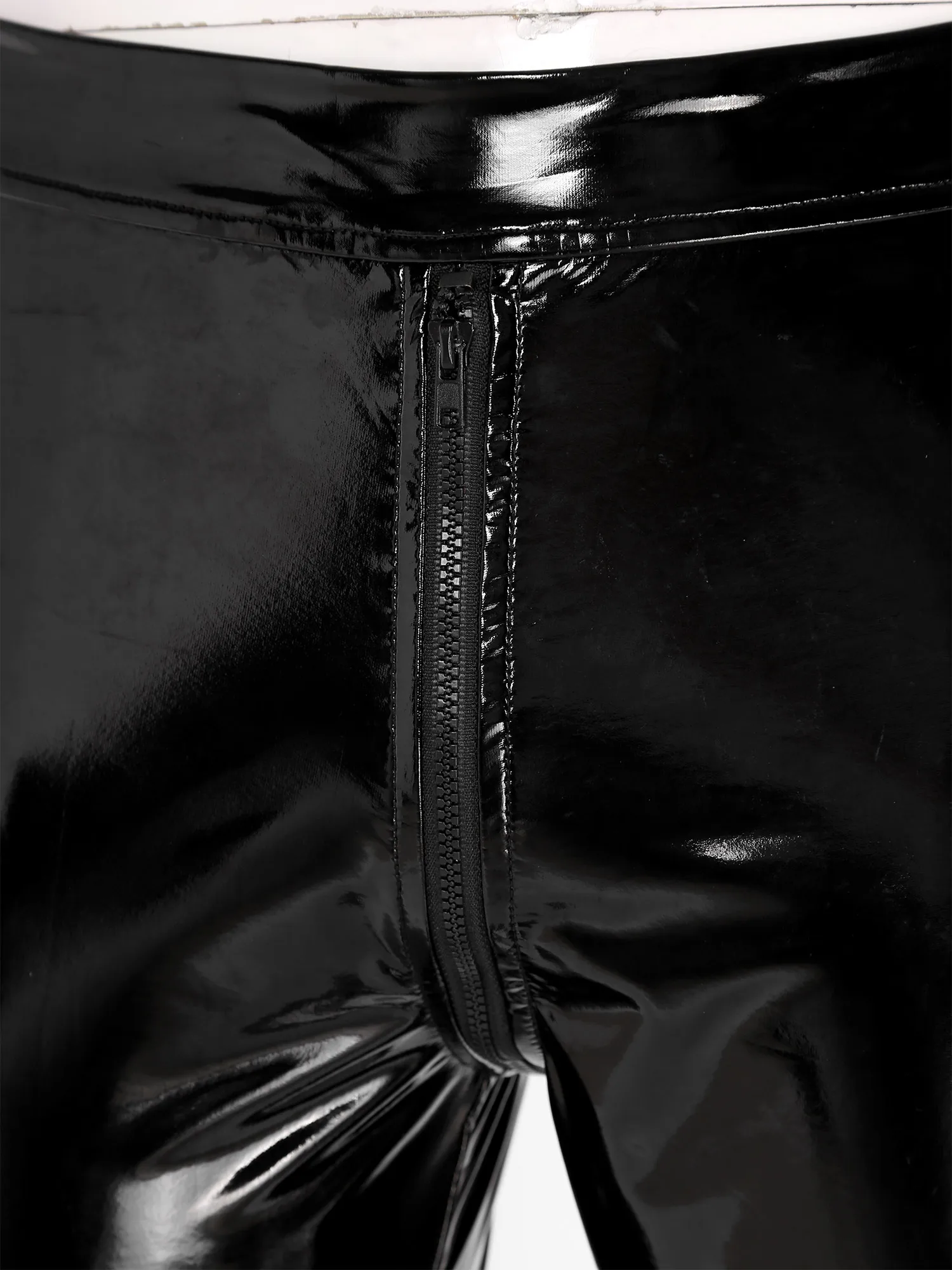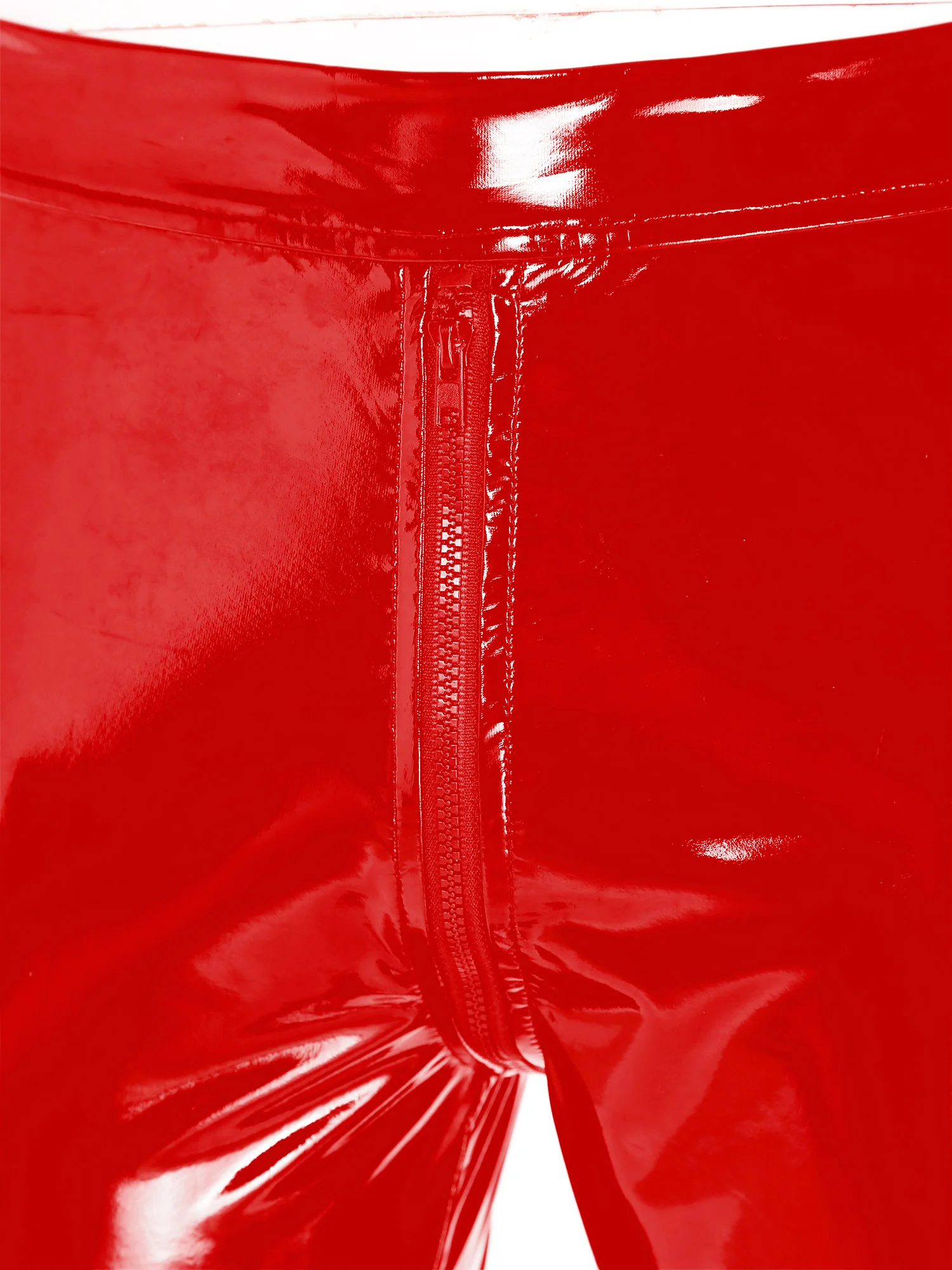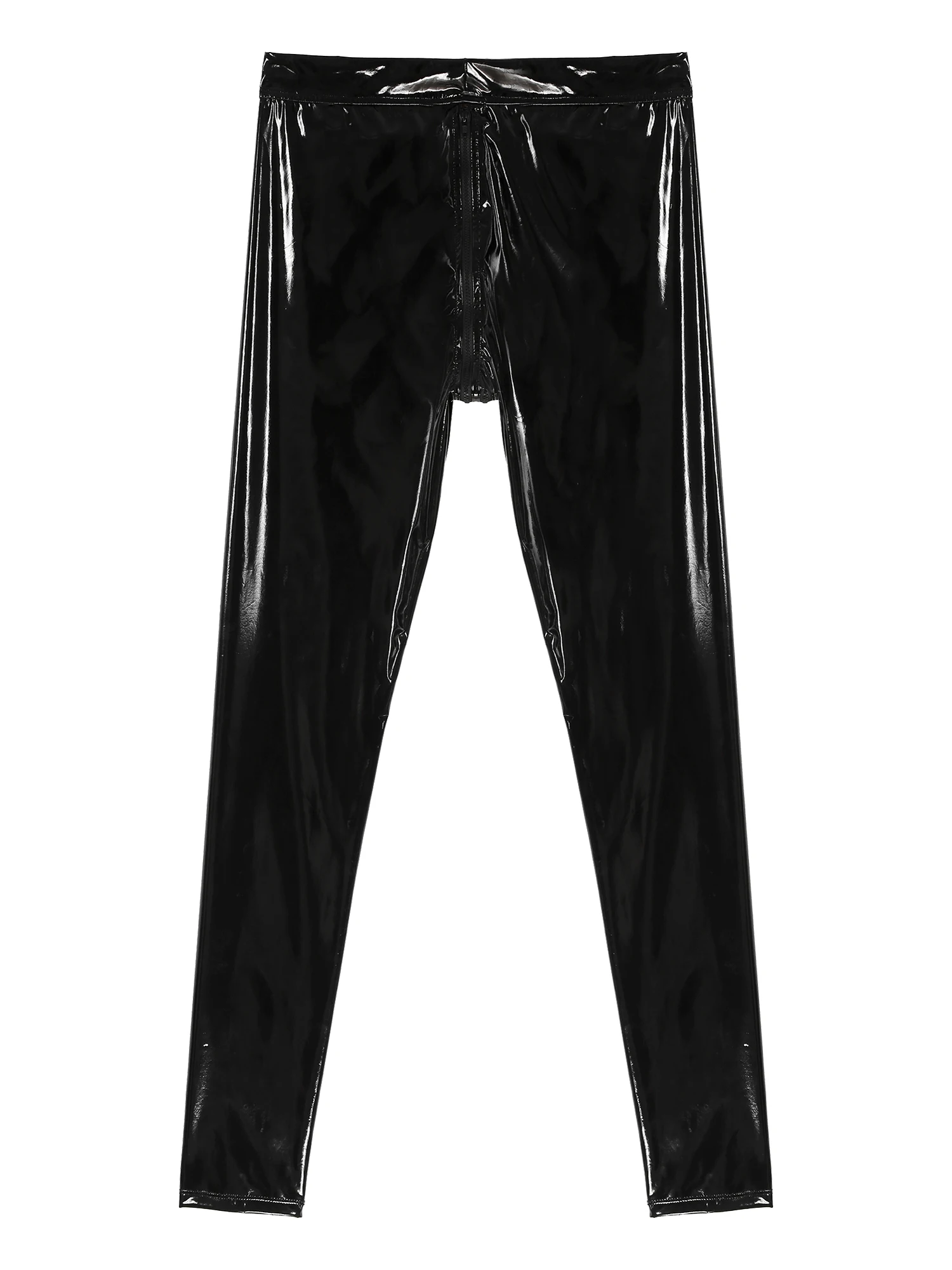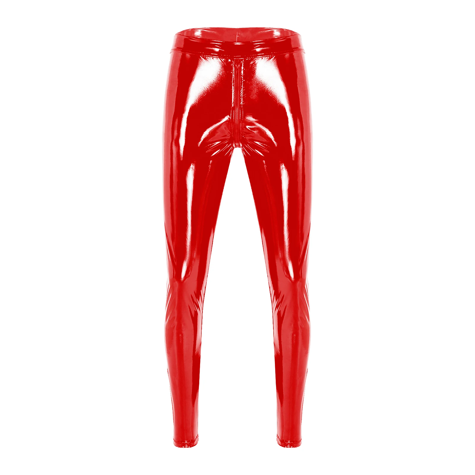 Men Low Waist Faux Leather Shiny Pants Fashion Tight Trousers for Club Stage Show.