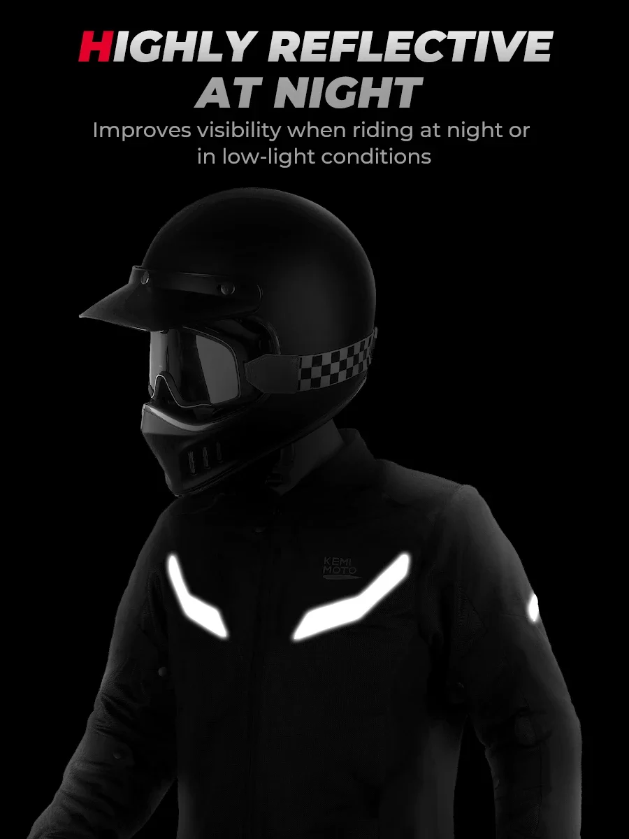 High-brightness reflective elements improve visibility in low-light conditions, significantly enhancing riding safety at night.