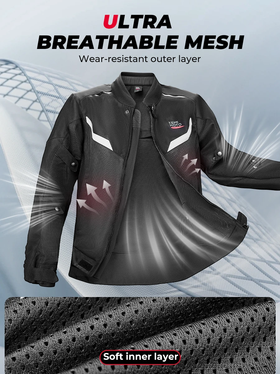 Featuring large mesh panels on both sides for continuous ventilation, this jacket ensures a fresh riding experience. With its lightweight ergonomic design, it’s perfect for city commuting or long-distance adventures!