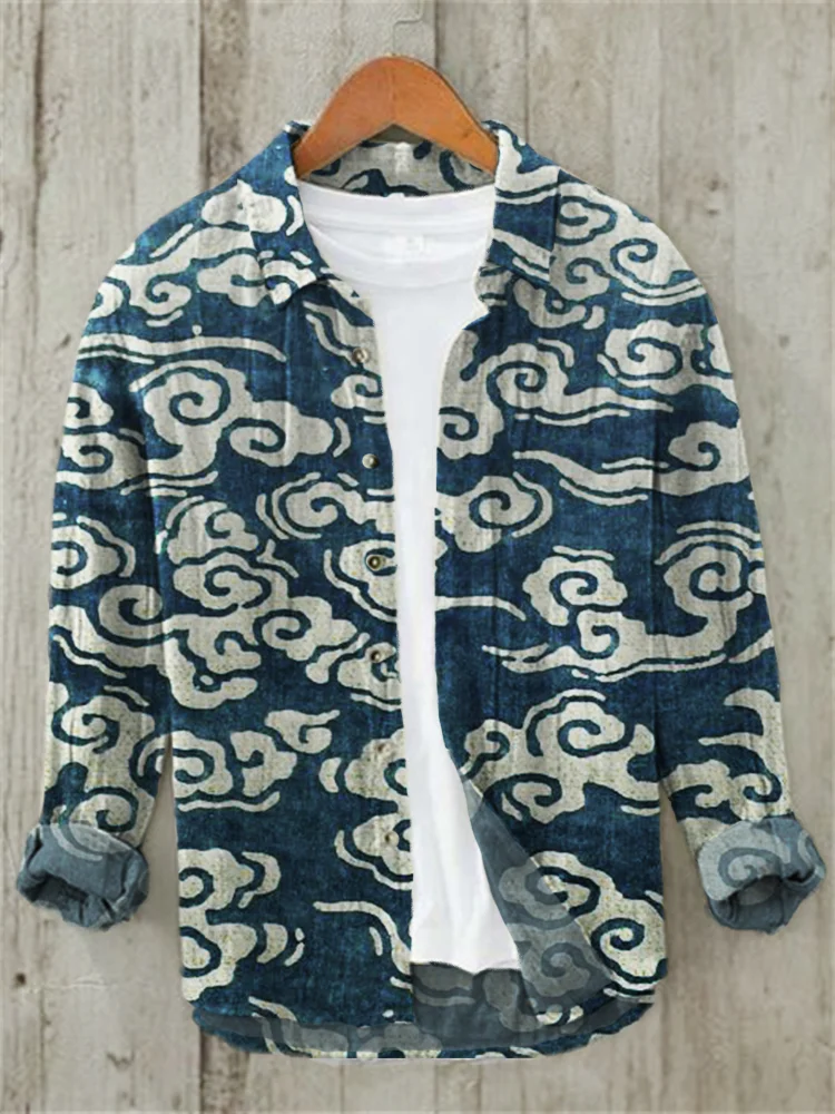 New Linen Printed Long Sleeve Shirt flower Traditional Pattern Art Hawaiian Shirt Men’s Super Large Size S-5XL Fast Shipping