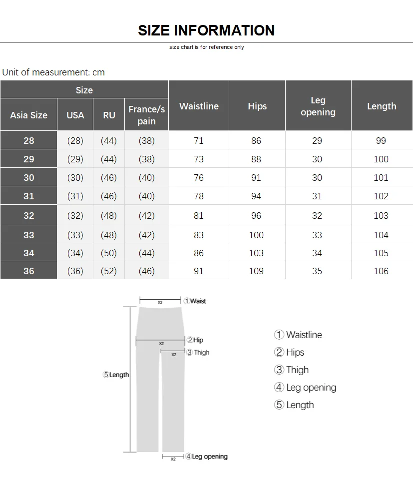1. The size is Chinese size, pants size 32 = 32 inches waist = 81.5cm waist.