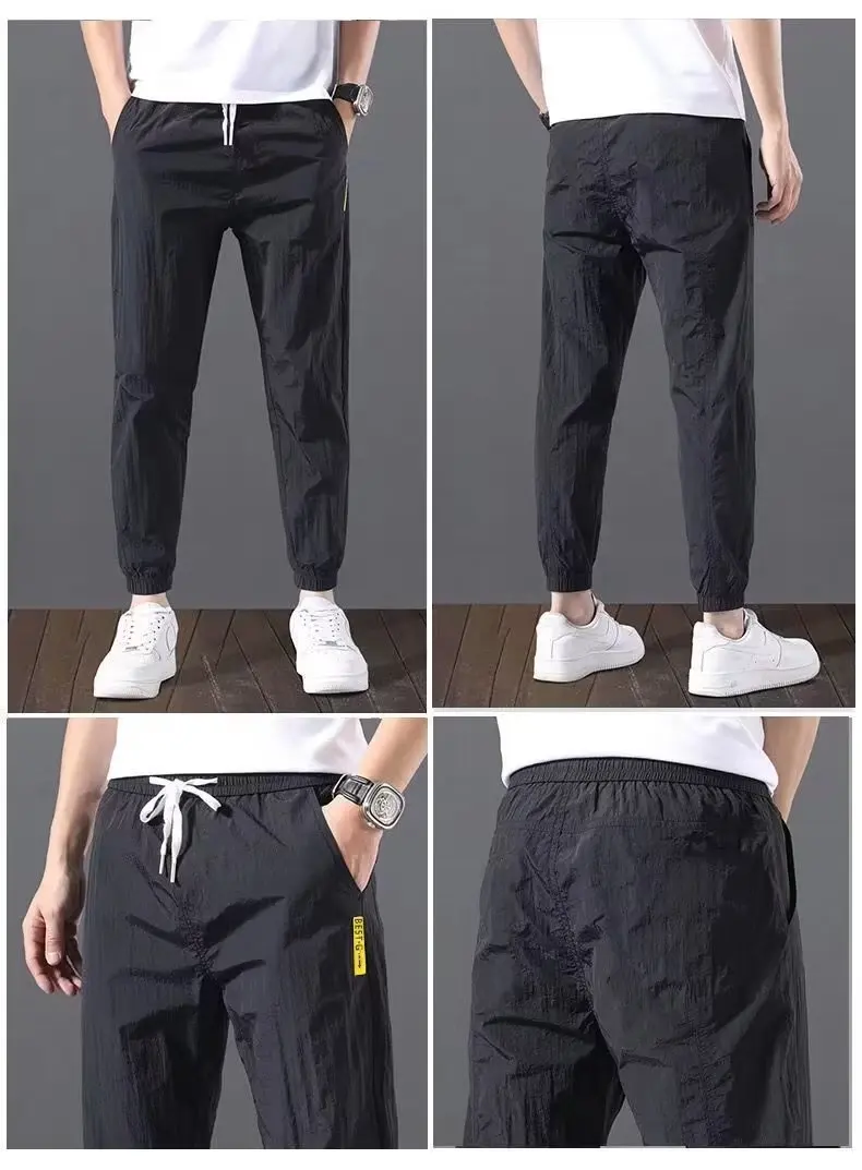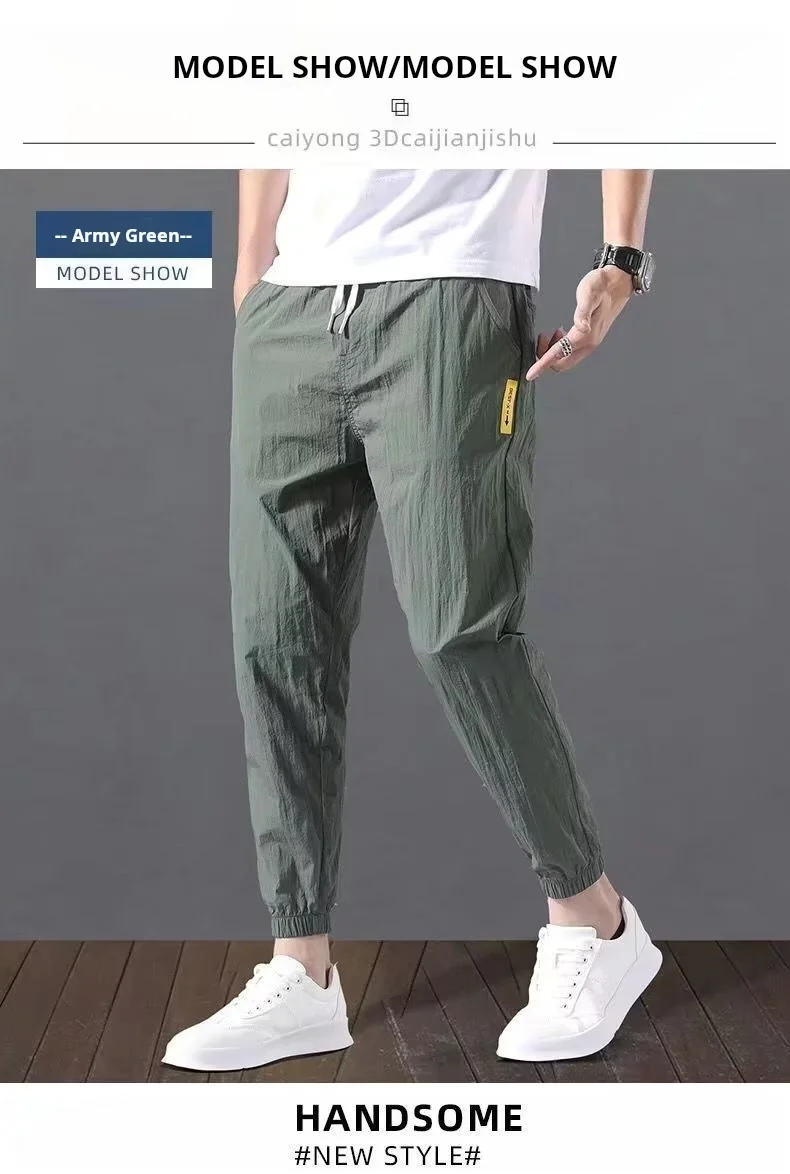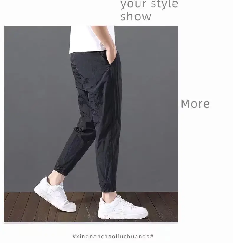 Summer New Fashion Trendloose Large Size Thin Ice Silk Breathable Korean Sports Casual Nine Point Pants 90s Vintage Clothes