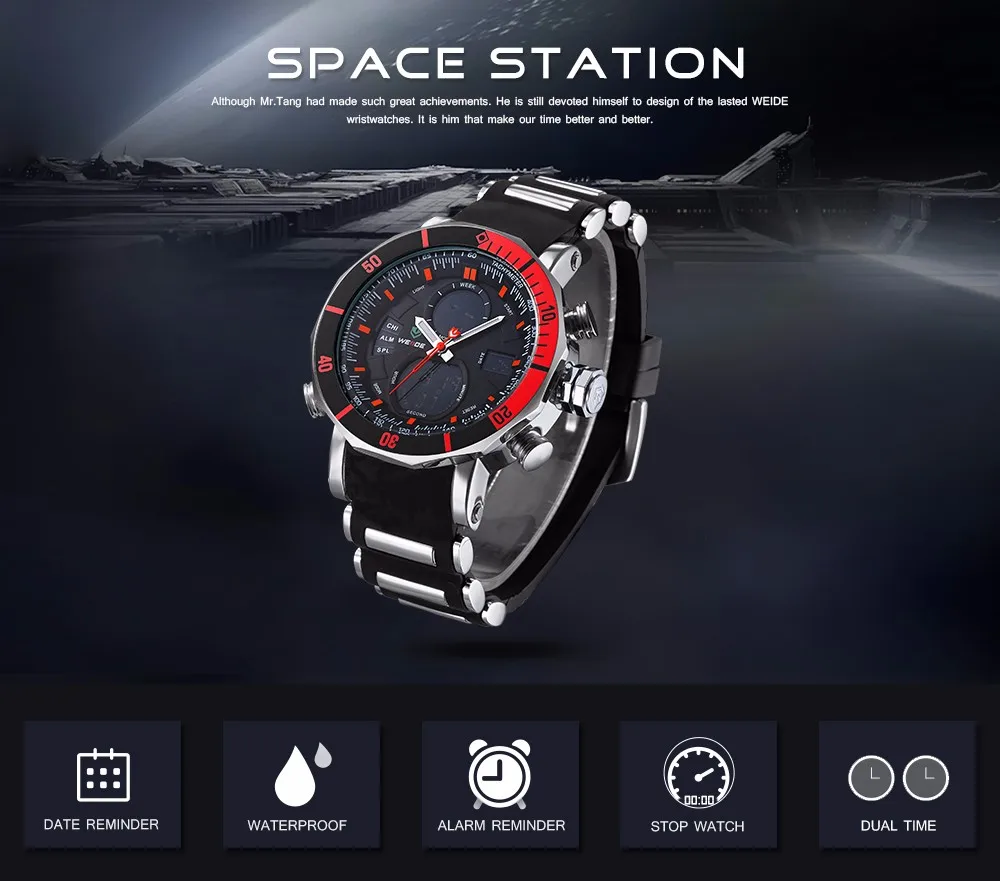WEIDE Top Brand Watch Men Sports Series Luxury Logo Multi-functional Analog Quartz Digital Alarm Stopwatch Big Clock For Man